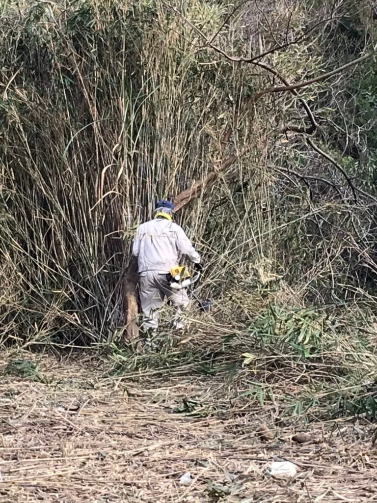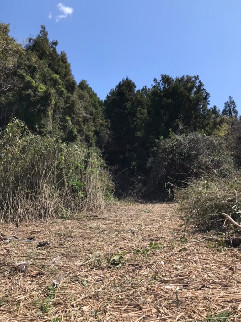 密集した竹を刈るのは容易ではありません。草刈機もお手上げです。刃がすぐにボロボロになる割に作業が進みません。2枚目のようなところをかき分けて……何とか人が通れる道を確保して💦