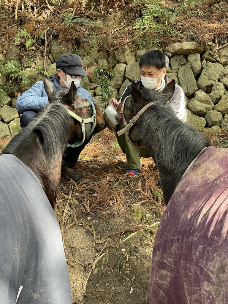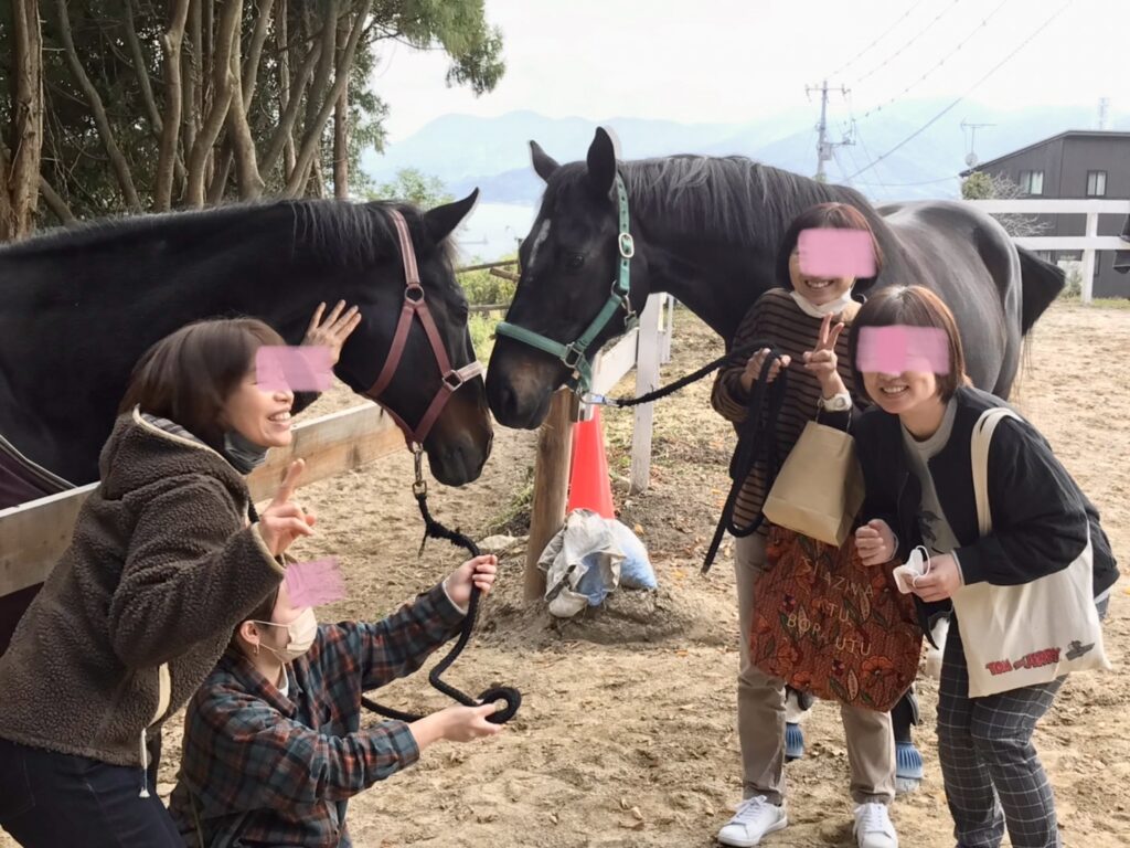 ふれあい、引き馬……ご希望の方には作業という名のアウトドア体験も❗️✨焚き火をしながらお餅を焼いたり,焼き芋したり💕