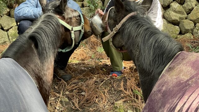 この日はお天気が良かったので、お外でお昼ご飯を食べました❣️ゴーくんはカメラ目線です💕人が食べている物がおいしそうに見えるのは、馬も同じなのか、しばらくしたらゴーくんがベリーちゃんのお茶碗の中のものをモグモグ…ベリちゃんは優しいから文句も言...