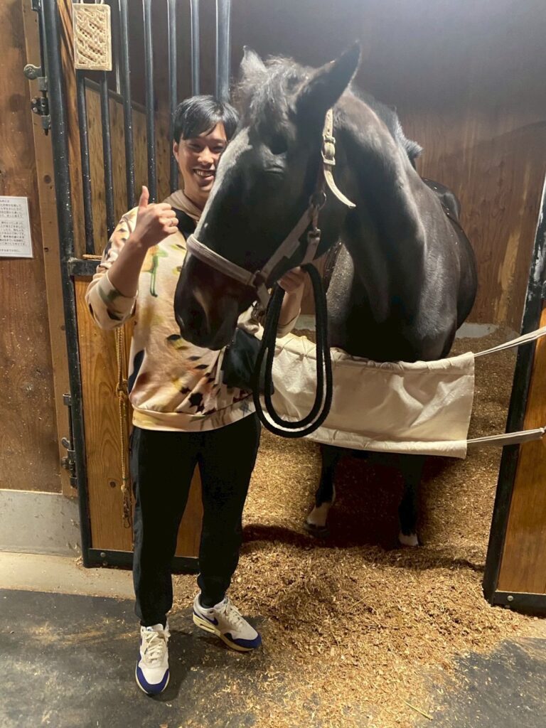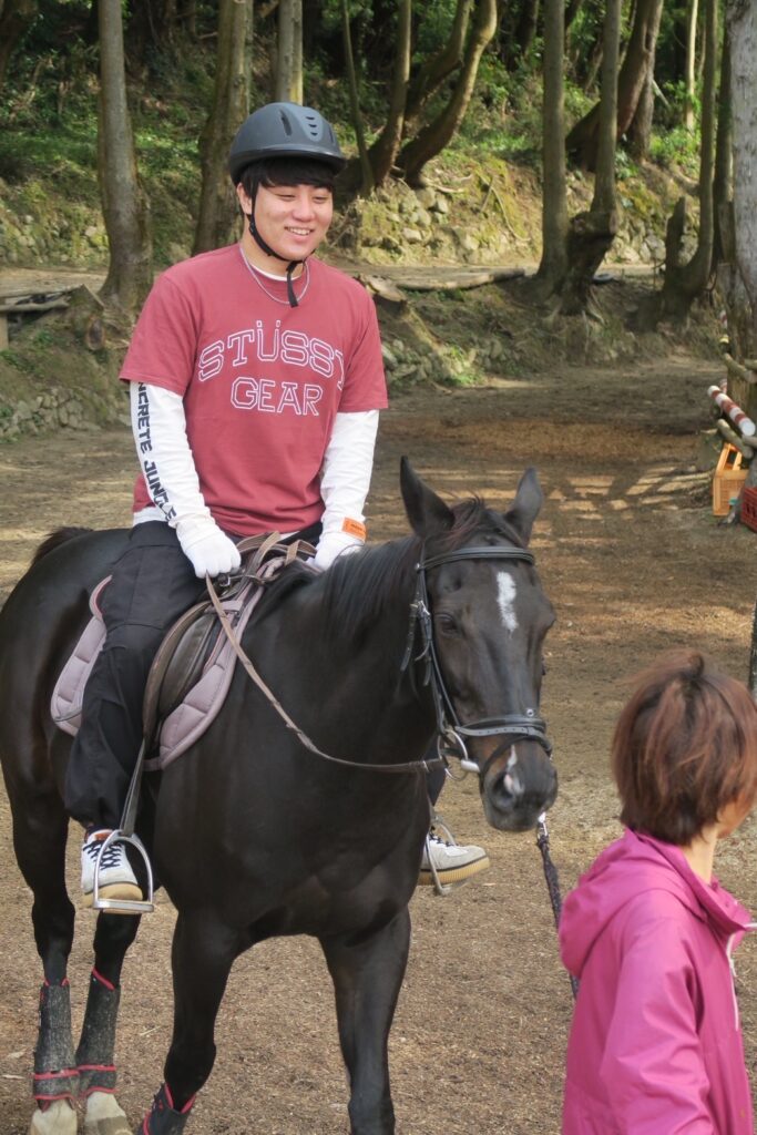 馬とのふれあいも満喫✨みんなを順番に乗せて、ゴーくんも頑張りました💕もちろん、薪割りもしてもらって、若い力を有効活用✨モルックも楽しんで、お昼は薪ストーブでビビンバ、焼肉etc. みんなで楽しく過ごしました❣️