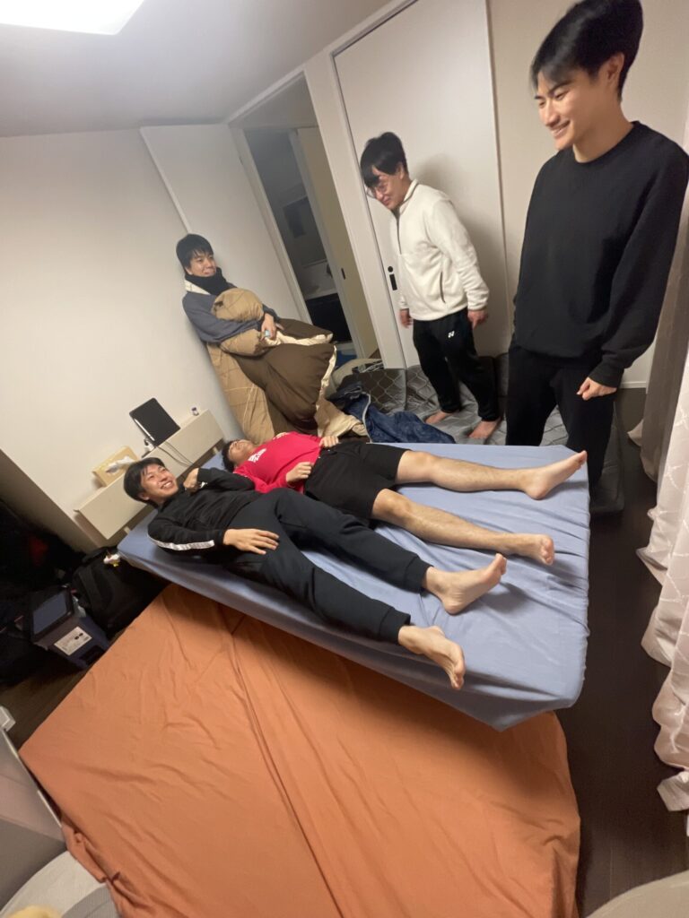 『このベットに2人は無理だね👦』etc. 若者に任せ口出しせず、寝具の準備だけして〜朝起きてびっくり😳洗面所にも1人寝ていました🤣
