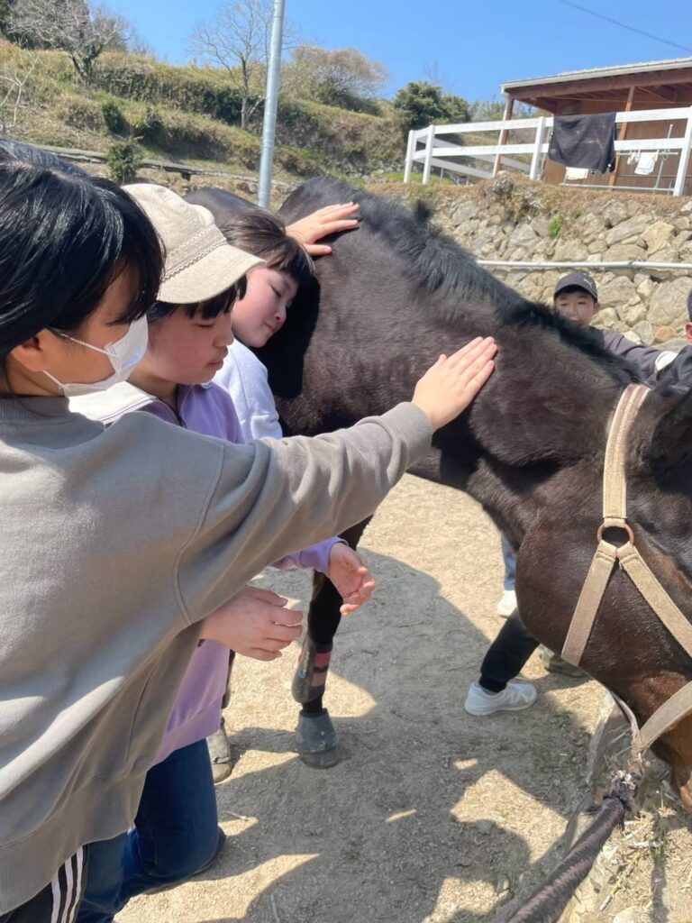 この日は子ども会のイベント会場に琴石サラブレッドパークを選んでいただきました❣️スタッフが少ないので、親御さんにも参加していただいて〜子ども達と一緒に初めての体験が多かったと思いますが、下見にも来てもらっていたので、スムーズにコトを運ぶことができました👍