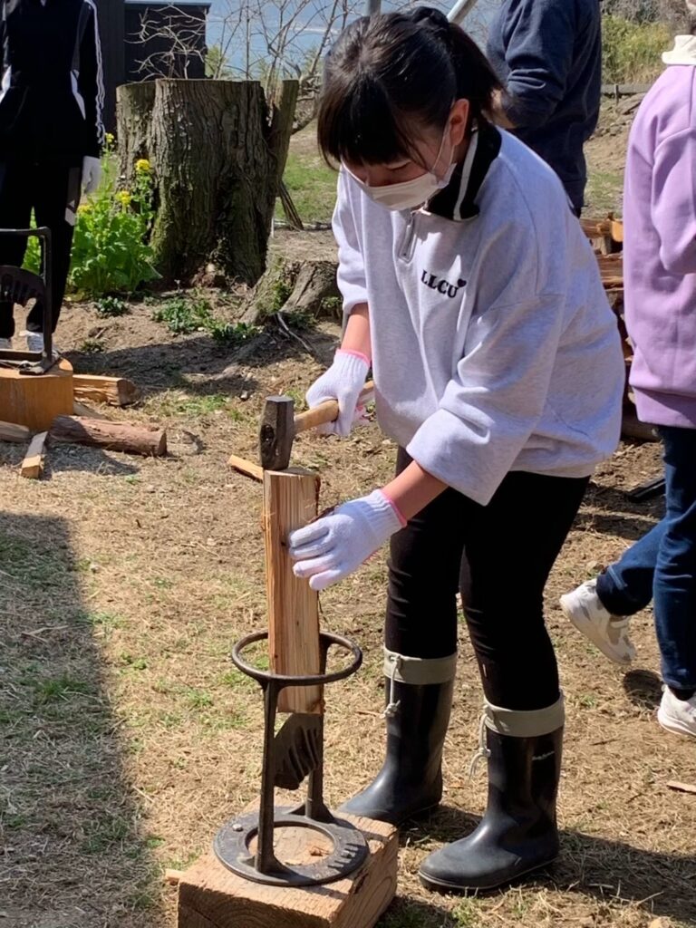 火をつけるのも初めてです。火の付け方も学びました。