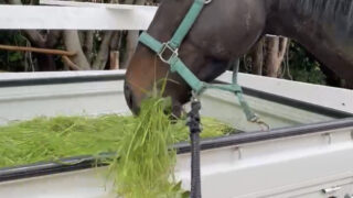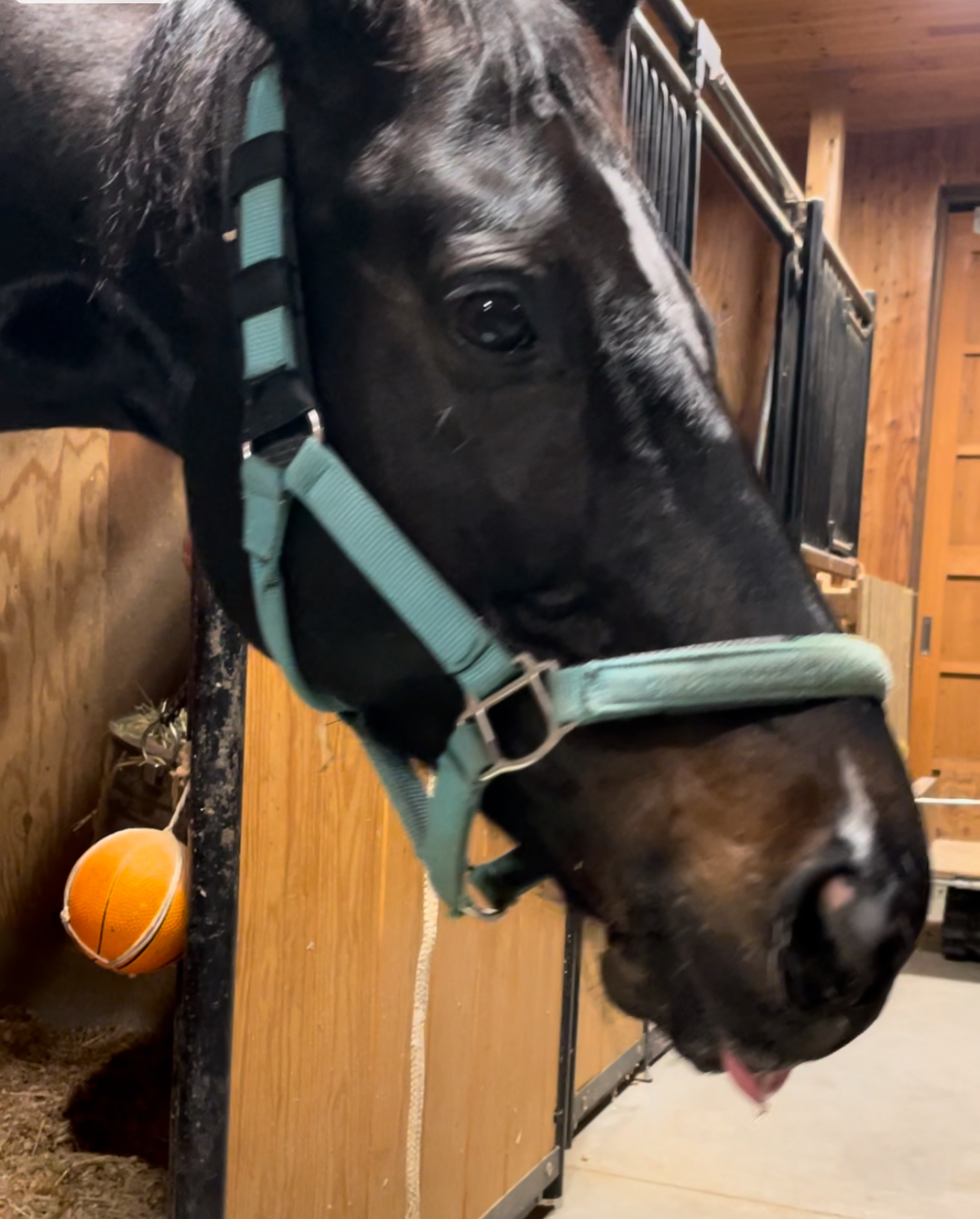 ゴーくんは我が家に来た時、蹄に大きな爆弾を抱えていました。もしかしたら、競馬を引退するきっかけになったのかも。何らかの原因で脚を痛め、それが蹄にも影響し、蹄の中が蟻の巣のように空洞になる『蟻洞(ぎどう)』という病気を持っていました。私はそれを知っていましたがゴーくんを引き取ることに決めました。蹄に病気……それだけで周りからは猛反対。だって元気な馬でも健康を保つのが大変なのに、病気持ちの馬を獣医さんがそばにいない我が家で面倒を見るなんて、無謀としかいいようがないからです。でもね、ゴーくんはついてる❣️いい装蹄師さんに出会い、きれいなおがくずのお部屋で過ごせたことで、何と1年半で完治しました✨
